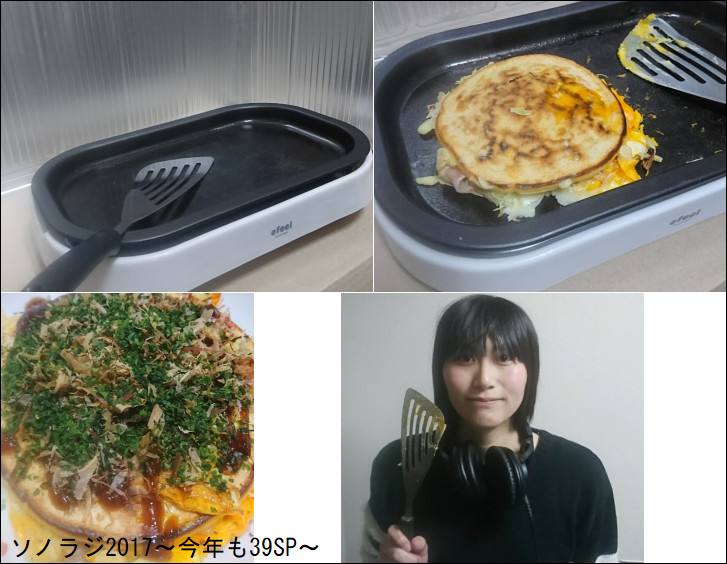 ラジオを放送している部屋には「ジュー」という音とお好み焼きの匂いが立ち込めました。
